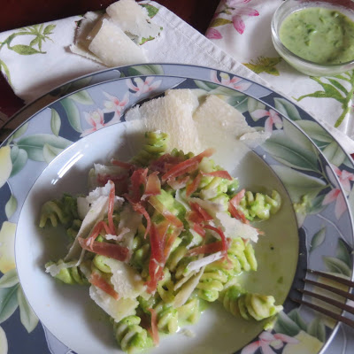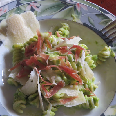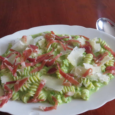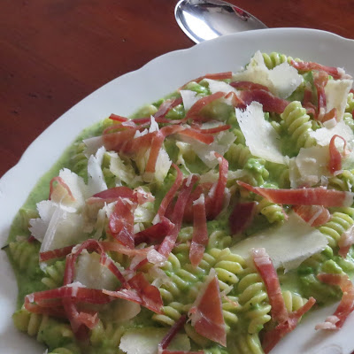 Impiattate e decorate con scaglie di Parmigiano -Reggiano e il prosciutto crudo tagliato a striscioline.
