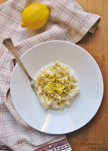 I Fusilli con Crema di Ricotta al Limone e Pistacchi fanno parte di questa categoria e sono tra i miei preferiti. Oggi li gustiamo insieme. Buon pranzo!