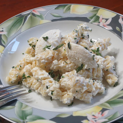 Servite subito nei piatti e completate ogni porzione con una o due quenelle con la ricotta rimasta un ciuffo di prezzemolo tritato e alcune foglioline di maggiorana.