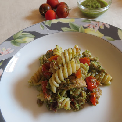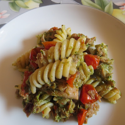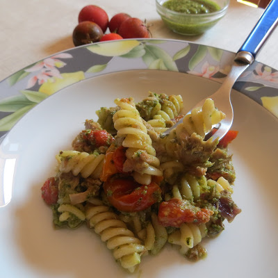 E’ un primo a base di tonno, pesto e pomodorini, un primo squisito e molto appetitoso, non lo conoscevo, ma mi ha subito conquistato…