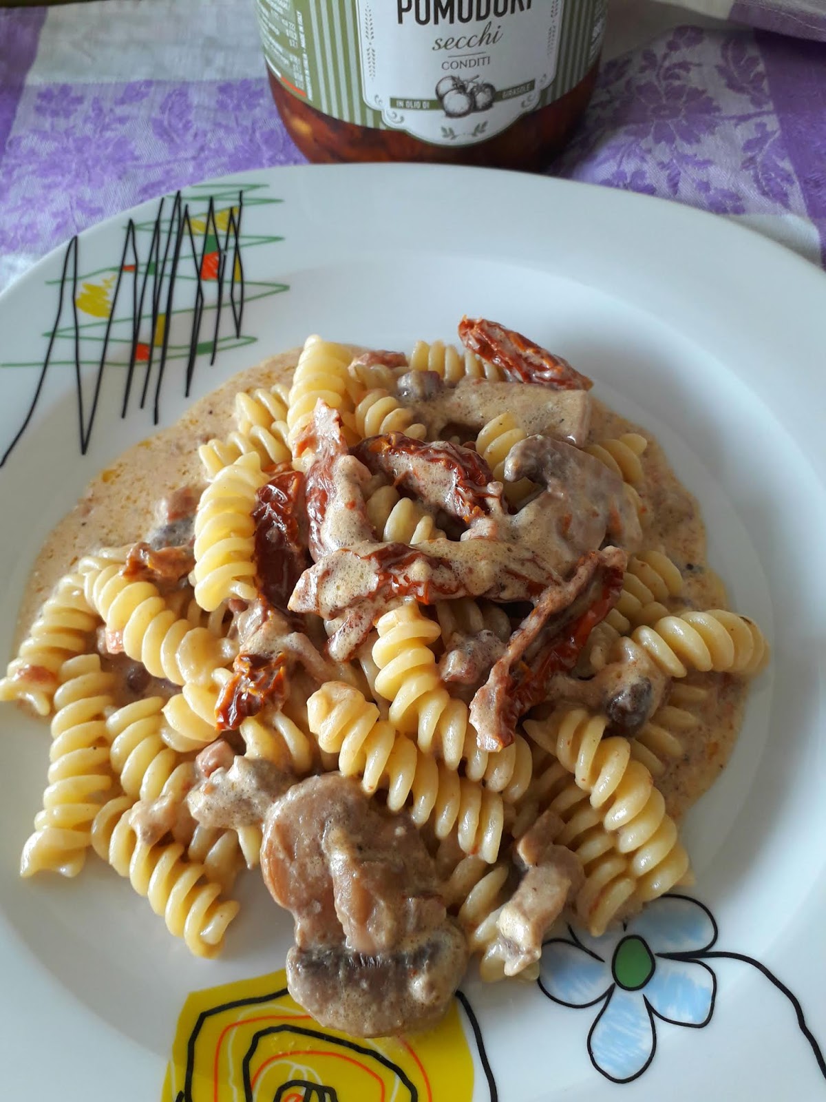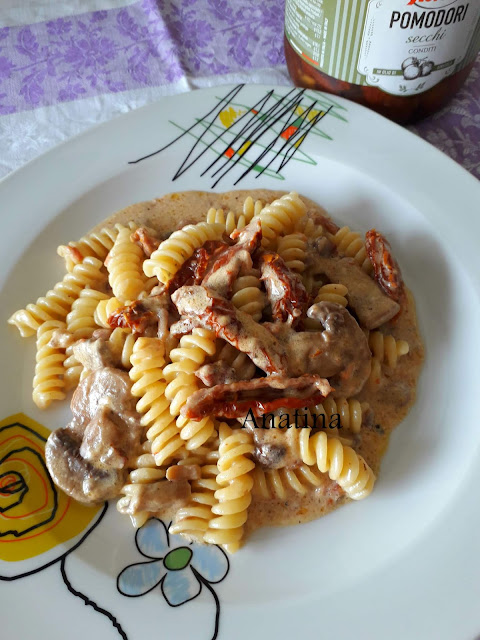 unire poi pomodori secchi e i funghi cotti,lasciare insaporire il tutto aggiungendo la panna e poca