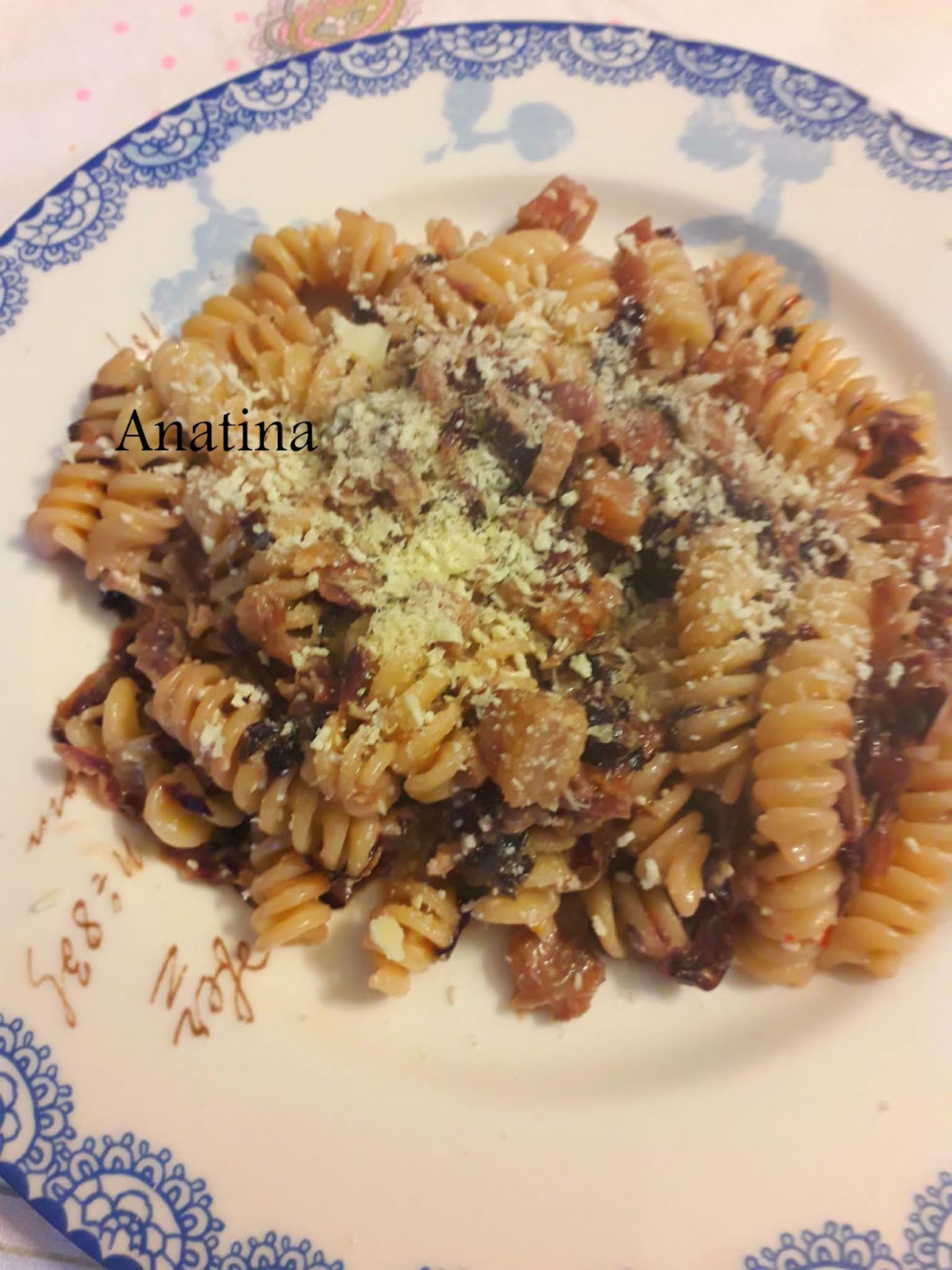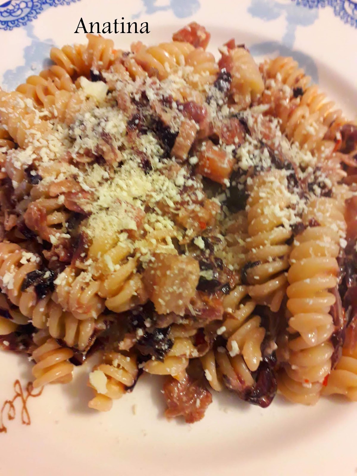 nella casseruola del radicchio,unendo la restante uvetta strizzata e la crema di formaggio piccante,lasciamo mantecare il tutto x qualche minuto e serviamo con una manciata di grana grattugiato!!