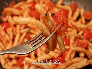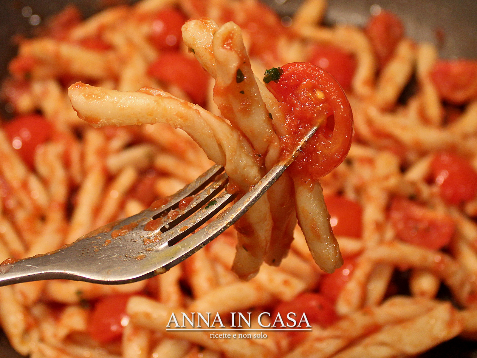 Io ho condito i miei fusilli semplicemente con salsa di pomodoro e pomodorini.