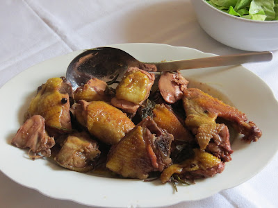 Quando il pollo sarà ben rosolato da tutti i lati, versate l’intruglio, con tutto quello che avete messo a macerare, abbassate la fiamma, coperchiate e lasciate cuocere per almeno mezz’ora.