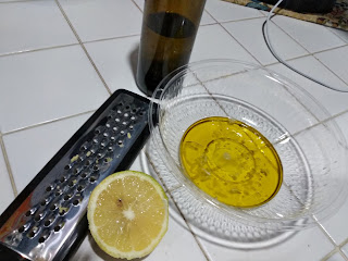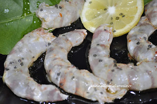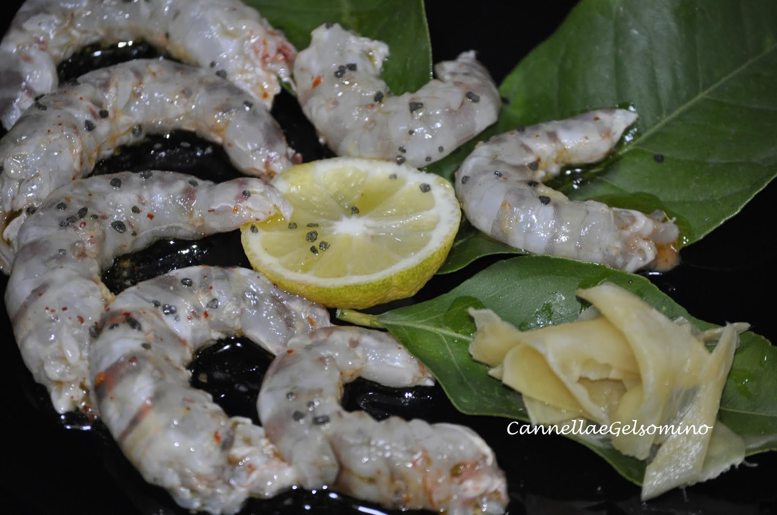 Preparare la marinata con olio extravergine d’oliva dei Monti Iblei, succo di mezzo limone (non troppo altrimenti andremmo a coprire il gusto delicato dei gamberi), scorza grattugiata di limone.