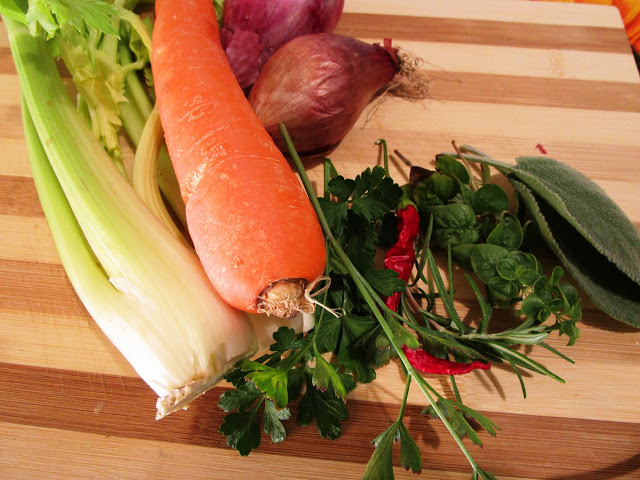 - 1 carota, 1 gambo di sedano, 1 cipolla piccola, 1 spicchio d’aglio, prezzemolo abbondante