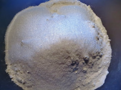 Versare la farina e lo zucchero nel boccale del mixer …