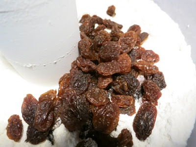 Se l’uva passa è un poco secca porla in una scodellina con acqua tiepida per 15′.