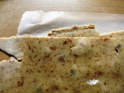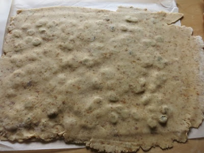 Stenderne ora con il matterello una parte sottilmente fino a raggiungere la dimensione di 26 cm x 36 direttamente su carta forno e cospargerla della restante uva passa…