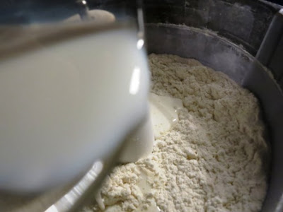 Versare il latte a temperatura ambiente e mixare ancora fino ad ottenere una massa omogenea..