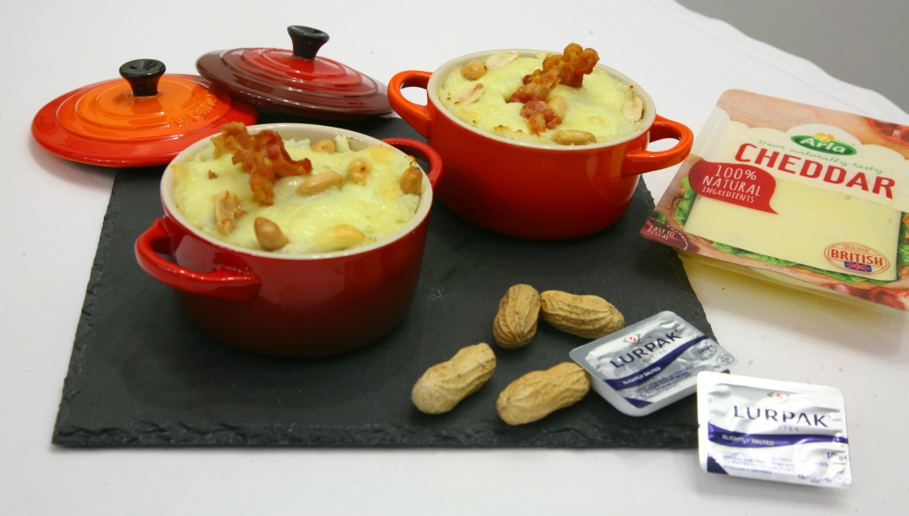 La versione di oggi è decisamente diversa, per prima cosa non ho messo le uova e poi l’ho preparato partendo dalla patata americana e accostando i classici ingredienti che rappresentano l’America: formaggio Cheddar, bacon e arachidi.
