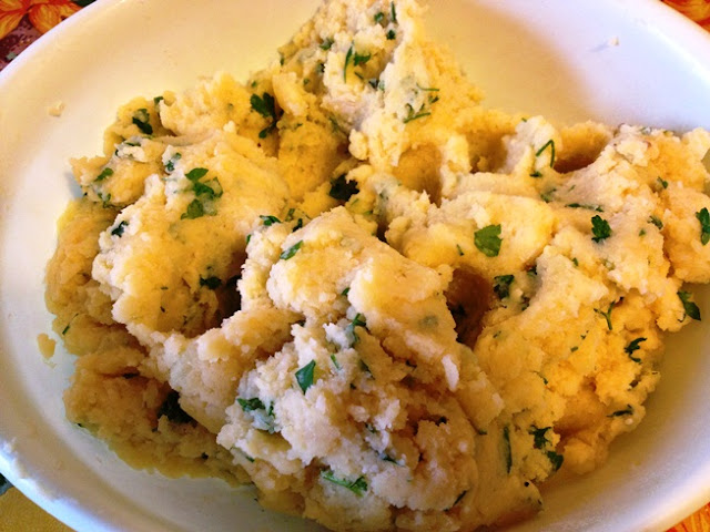 - condire la purea di patate con il formaggio grattugiato e il prezzemolo