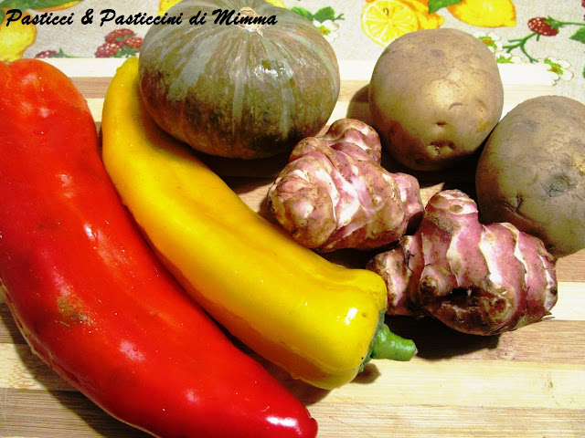 Quindi ho colto l’occasione per cucinarli e per colorare la preparazione, ho aggiunto la zucca e i peperoni.