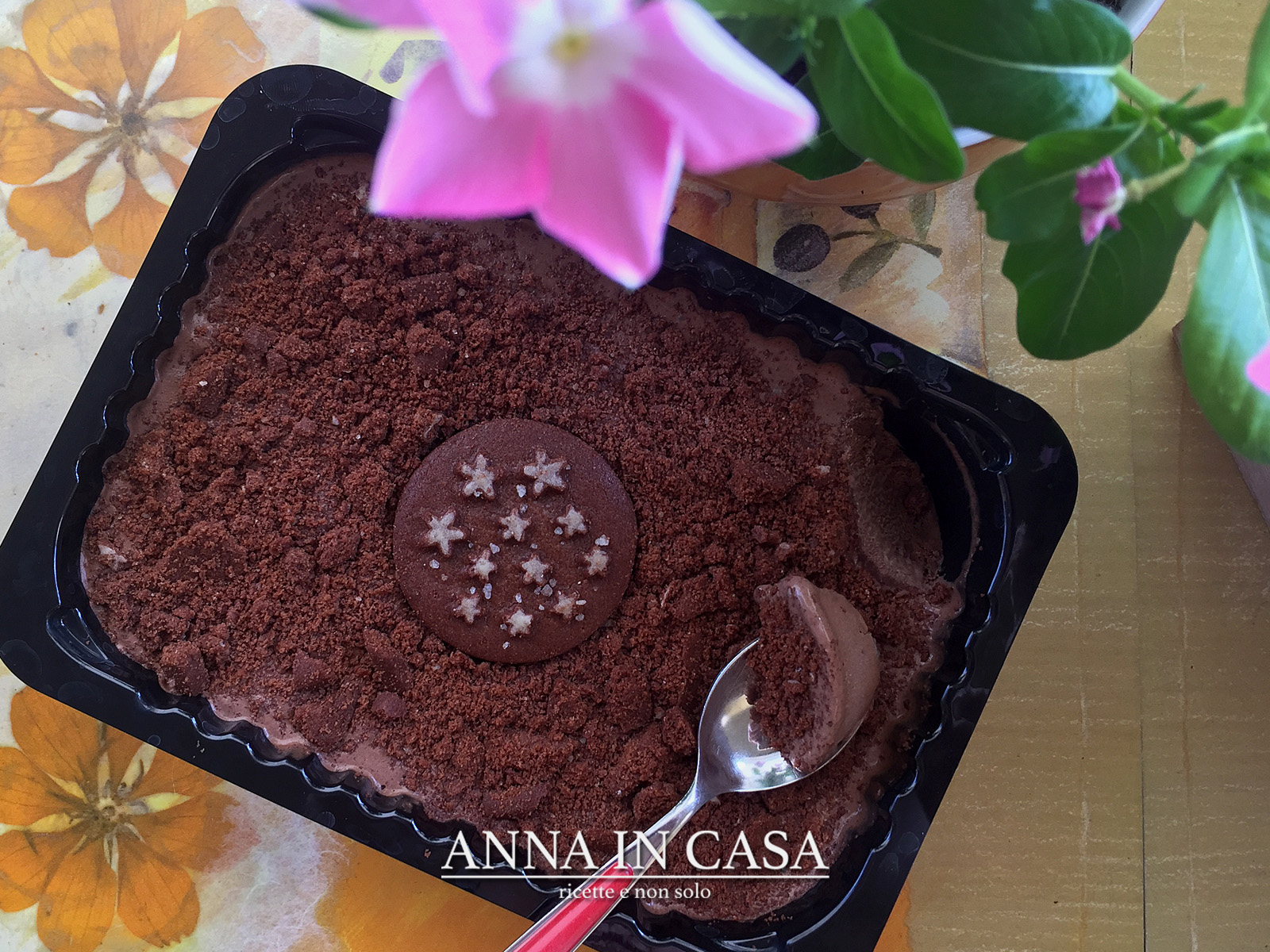 Versare la crema al cioccolato in un’altra ciotola, unire i biscotti sbriciolati più o meno grossolanamente (dipende dal vostro gusto), coprirla con pellicola a contatto a farla raffreddare completamente.