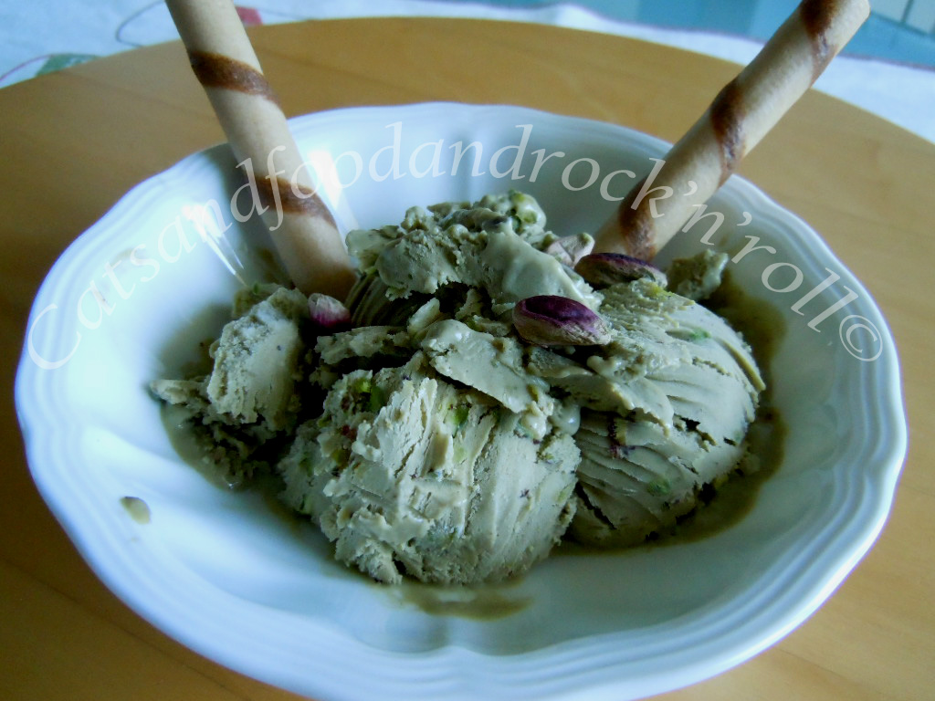 Avevo inoltre, dei meravigliosi pistacchi di Bronte, e un’altrettanto meravigliosa pasta di pistacchi di Bronte, entrambi presi dal mio solito pusher online, per cui mi sembrava che, per la scelta del gusto, non potessero esserci dubbi.