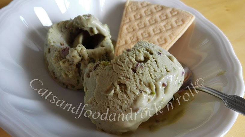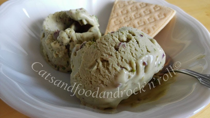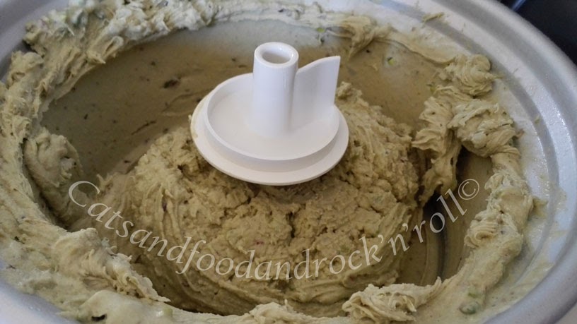 Rispondo prima alla seconda domanda: mentre la prima versione di gelato al pistacchio di Bronte è a base crema* + panna, questa è a base yogurt + panna. Perché ho voluto provarlo? perché ogni volta che ho fatto un gelato base yogurt, l’ho trovato più morbido e cremoso. Forse è solo una mia sensazione, ma pur senza nulla togliere ai gelati a base crema, preferisco l’altro tipo.
