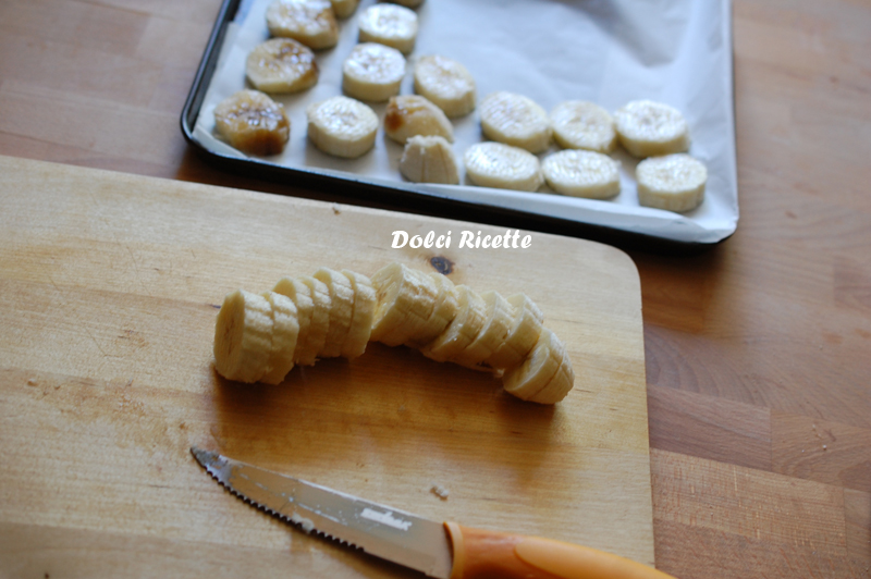 Procedimento: sbucciare le banane mature e dolci, tagliarle a rondelle non troppo sottili, e disporle sopra un vassoio dove avrete messo della carta forno.