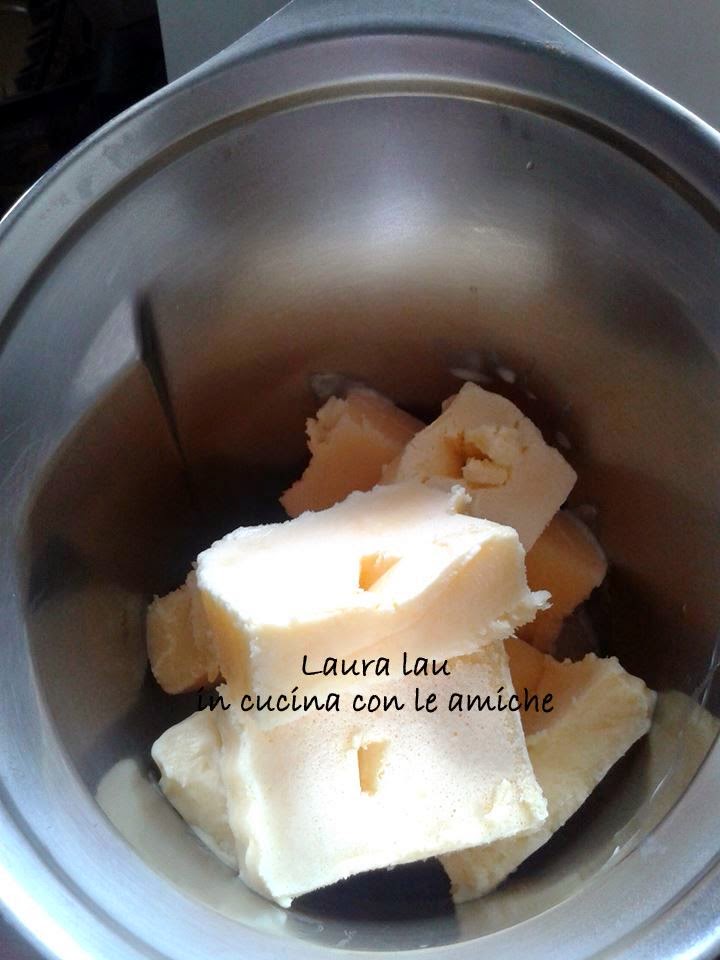 Togli poi dal freezer, taglia a grossi pezzi e inseriscili nel boccale, manteca per 20 sec. Vel 7 e 10 sec. Vel 4 spatolando.