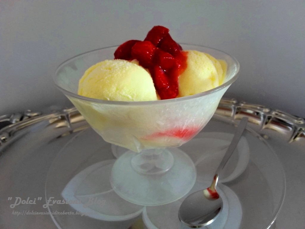 - Per il Servizio: disporre il gelato in coppe ghiacciate, alternandolo a piacere col ragù di fragole ben freddo.