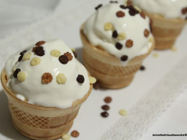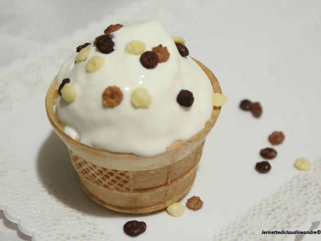 - Togliere dal freezer, metterlo nelle coppette, decorare con i corn flakes e servire.