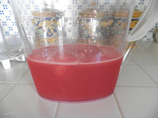 Tagliate la polpa in grossi pezzi e mettetela in un robot; non vi preoccupate dei semini perchè poi filtreremo il succo.
