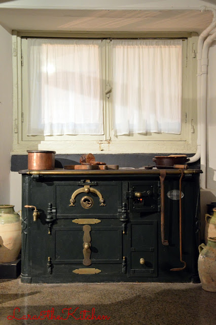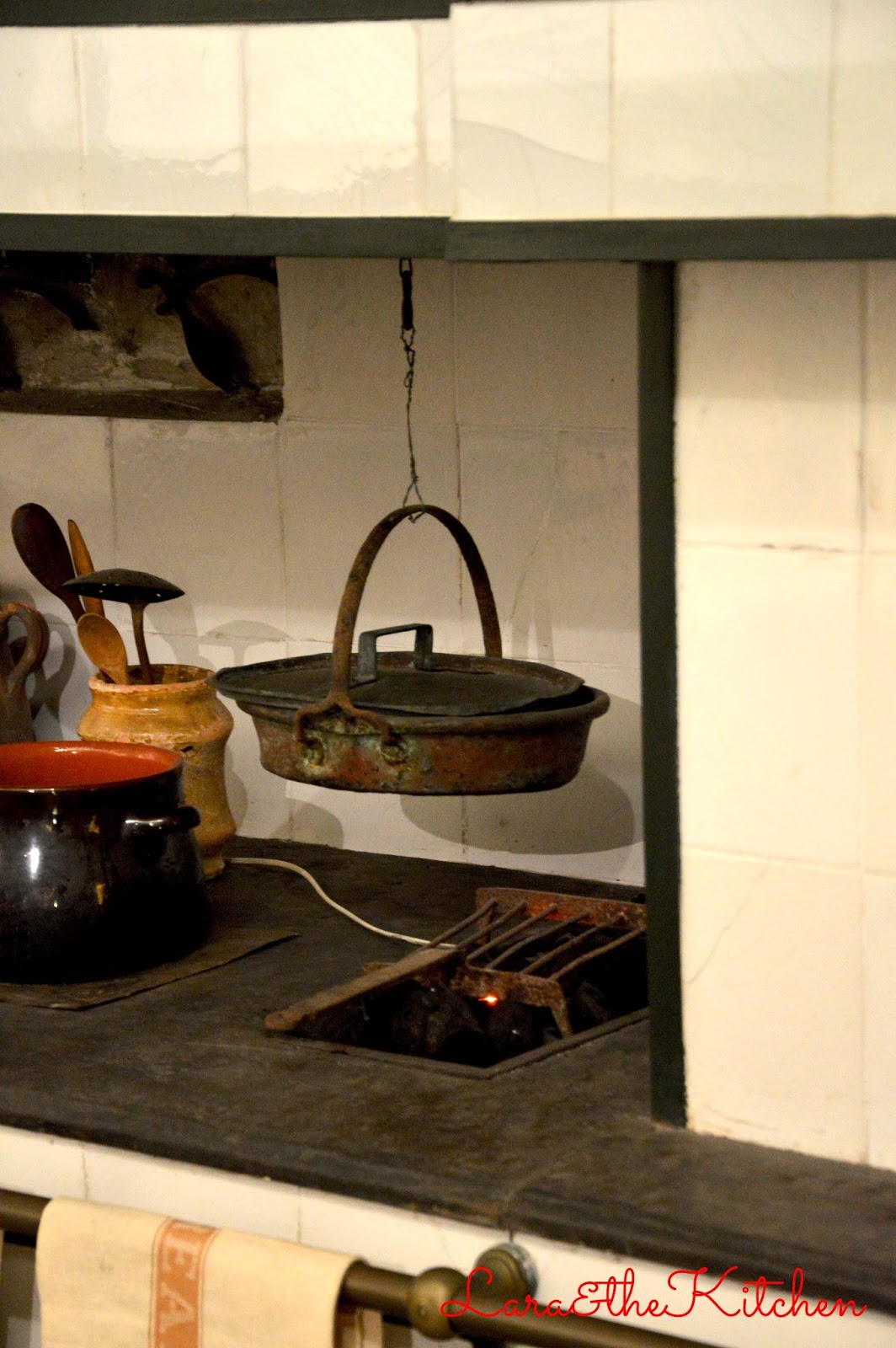 Innanzitutto abbiamo davanti a noi un esempio spettacolare di cucina in muratura (detta ronfò in genovese) della quale vi ho già parlato nel post su Casa Valéry. Qui troviamo tutti gli elementi intatti, il forno a legna, la grixella, la griglia, sotto la quale ardevano le braci vive, pentole di terracotta, e in basso gli sportelli, che servivano per alimentare il fuoco con il carbone.