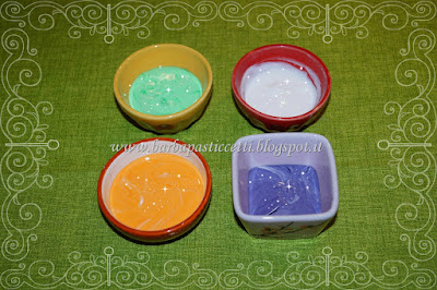 Se occorre la Ghiaccia colorata, basterà dividere il composto una volta pronto, in diverse ciotole ed in ognuna aggiungere gocce di colorante mescolando sempre con le frustine elettriche per ottenere il colore desiderato omogeneo.