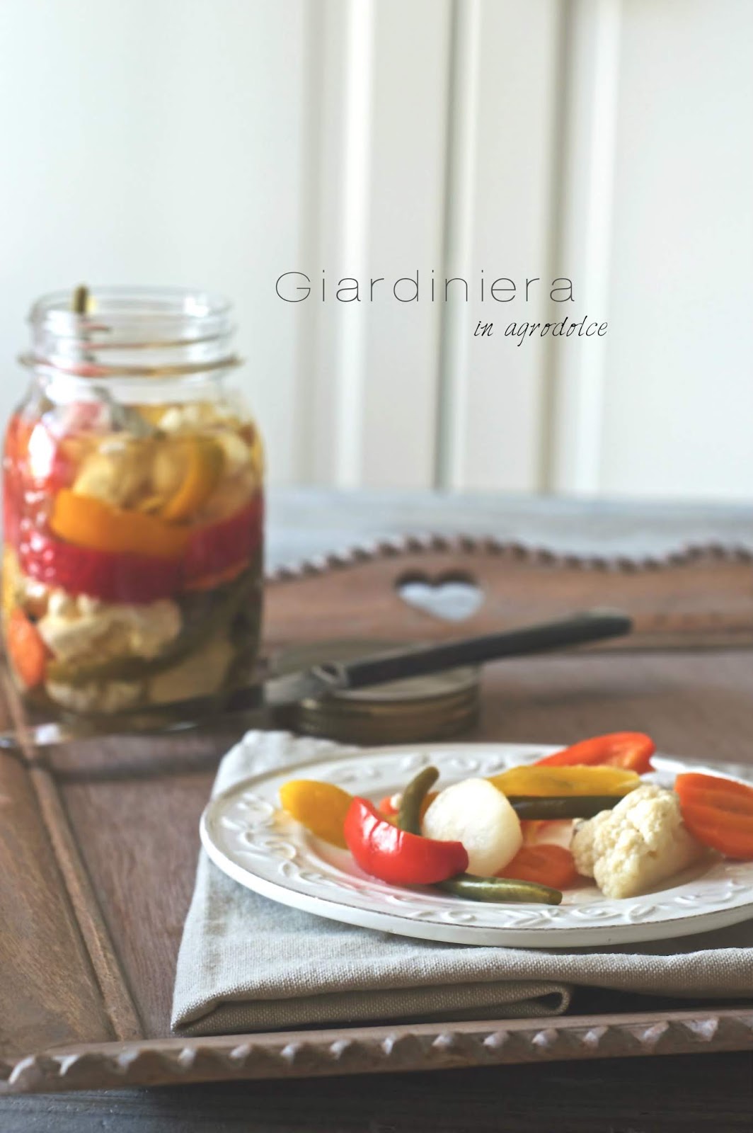 La giardiniera è una conserva che si prepara nella bella stagione per smaltire i molteplici ortaggi dell’orto, la sua composizione classica è fatta da un mix di verdure tra cui carote, peperoni, sedano, fagiolini, cetrioli, cavolfiore e cipolline, ma nulla vi vieta di togliere o aggiungerne altre per farne una versione personalizzata.
