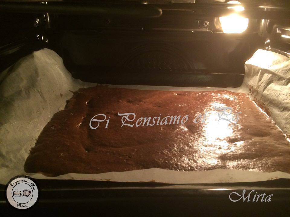 In una leccarda mettiamo un foglio di carta forno e versiamo il composto nero e cuociamolo in forno pre.riscaldato a 175° ventilato x 6 minuti precisi.