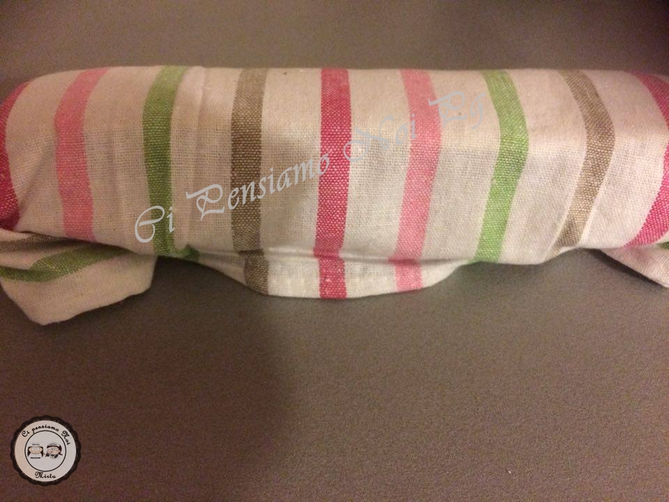 sforniamo il tutto e giriamo il pandispagna dalla parte scura, arrotoliamo nella carta forno stretto in modo da formare un rotolo e avvolgiamolo nel panno da cucina pulito.Lasciamo raffreddare bene.