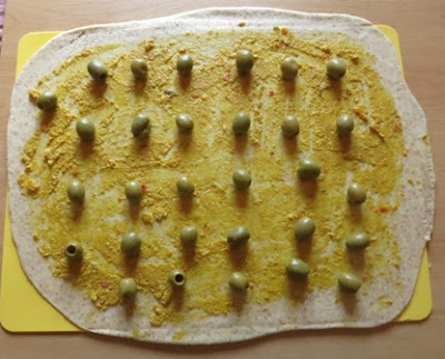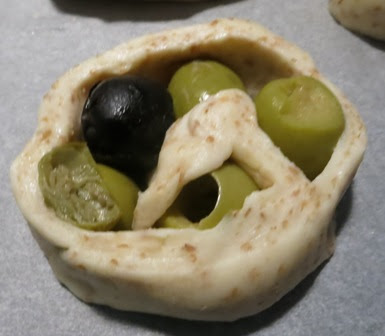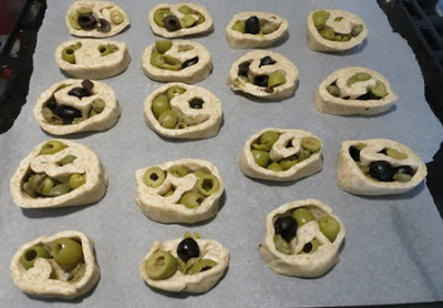 Qui mi sono fatta furba e ho disposto le olive in modo più regolare..