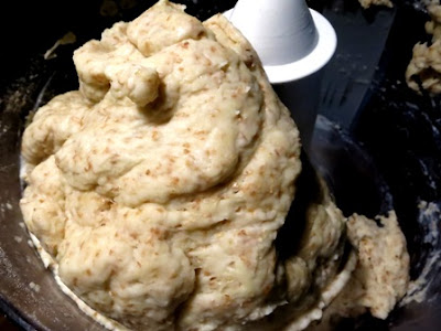 Quindi sempre mentre il mixer è in funzione aggiungere a filo tanta acqua calda fin quando si ottiene una massa morbida come appare qui sotto…