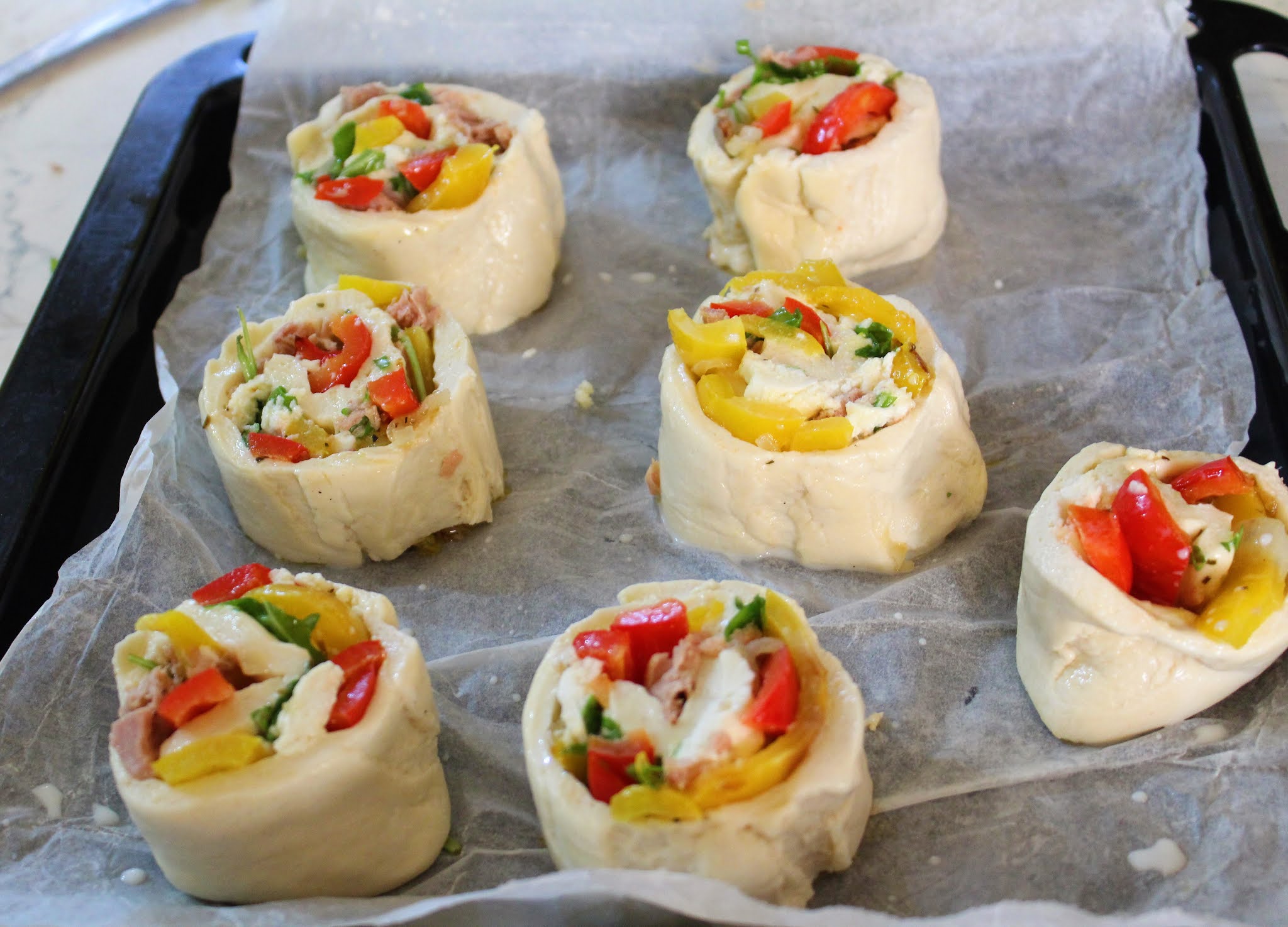 Come vi ho anticipato, la preparazione è semplicissima: si srotola la base per pizza e si farcisce lasciando libero un bordo attorno al perimetro, si arrotola, si affetta e via in forno….
