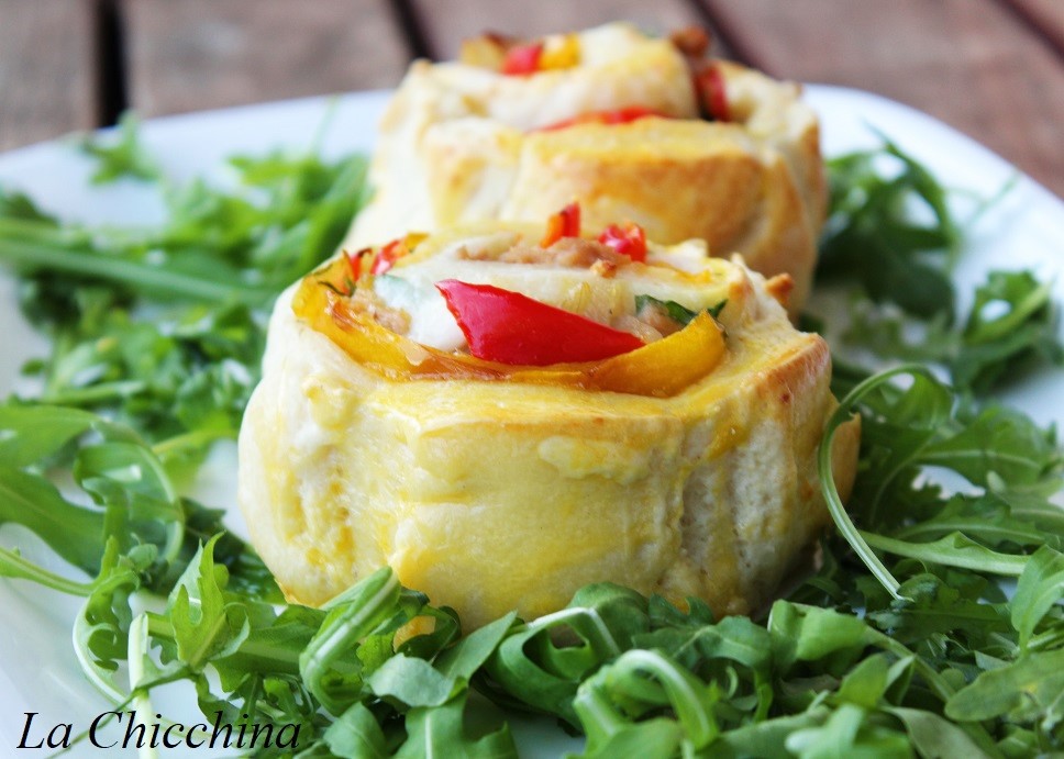 Le potrete mangiare a merenda, per uno spuntino veloce e sono ottime come cibo d’asporto..allora: ci venite a fare le girelle con tonno, peperoni e rucola? Tutti in carrozza…