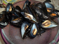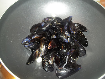 Pulite e lavate le cozze e fatele aprire con uno spicchio d’aglio ed un cucchiaio di olio.