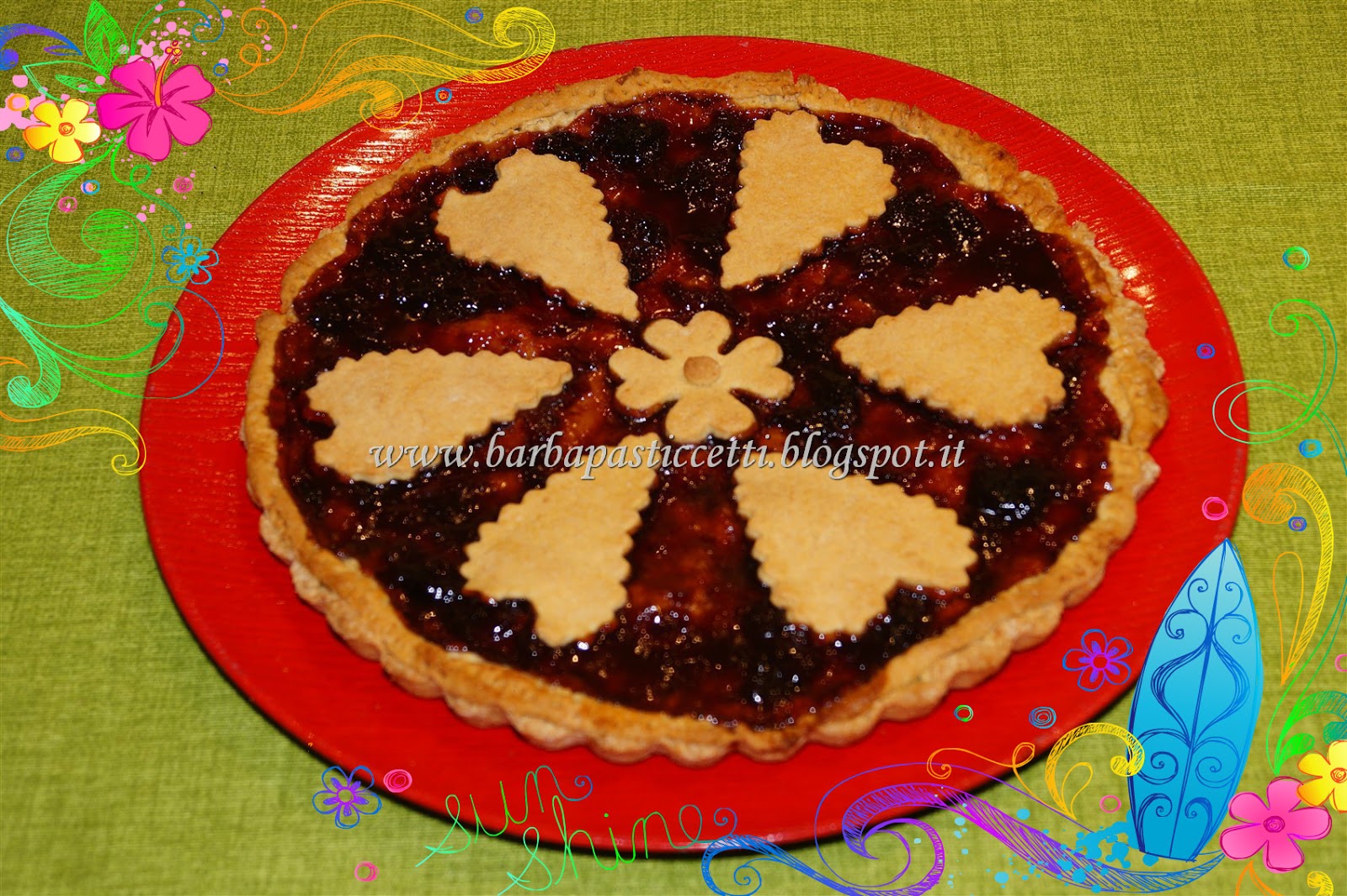 Se si vuole realizzare la crostata, la ricetta è la stessa ma al posto delle mandorle, delle ciliegie candite e delle gocce di cioccolata si utilizza la confettura di ciliegie (o altra a vostra scelta) e si procede con la classica preparazione.