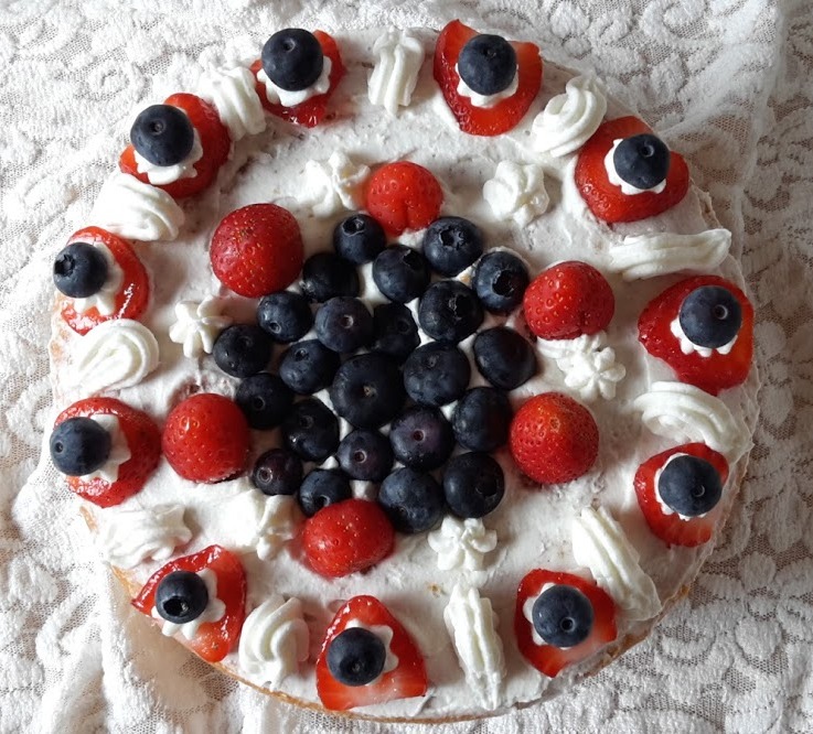 E decorare a piacere con altra panna, fragole e mirtilli…