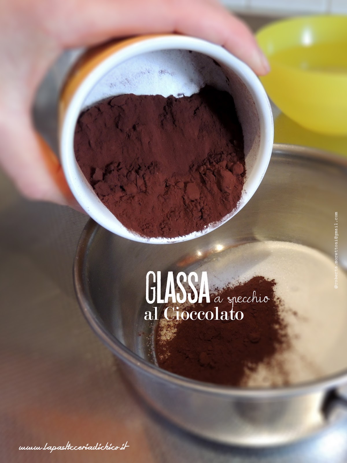 - Ora mettete lo zucchero e il cacao in un pentolino, aggiungete l’acqua la panna .