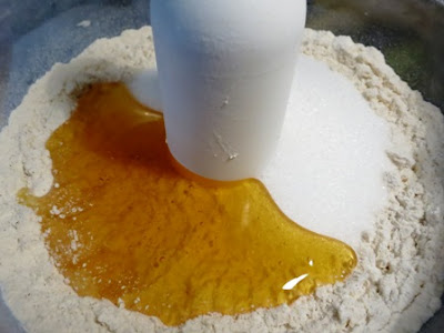 Unire ora lo zucchero e il miele e azionare nuovamente il mixer cosa che va fatta ad ogni ingrediente aggiunto..
