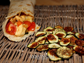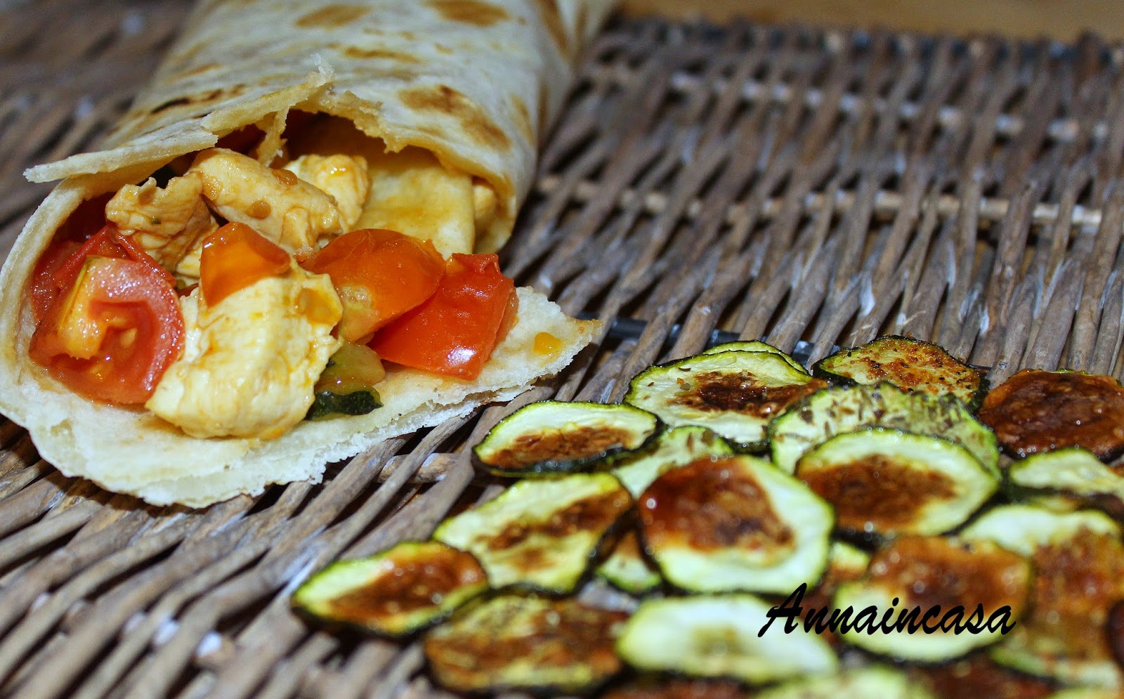 Fill the piadina with meat and vegetable wrap and serve with the zucchini chipis.