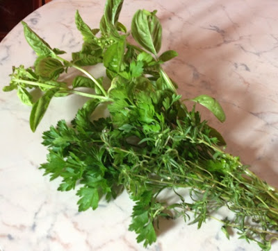 -2 cucchiai di erbe aromatiche secondo il gusto personale (io prezzemolo, timo e basilico) tritate al coltello o con la mezzaluna