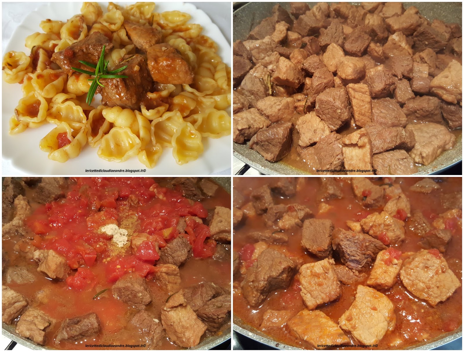 Ho preparato questo piatto unico di gnocchetti e spezzatino perché ormai per via che devo mettere per il lavoro, devo sempre provvedere di preparare piatti di questi, ma anche accompagnati da un pò di verdura, nel modo che non li manchi nulla e mangiano in modo più sanno per dire, ma si può servire anche separatamente. Lo spezzatino è molto più di quanto ci vuole da consumare per una volta, ma si può aggiungere alla pasta a piacere e il resto mangiarlo il giorno dopo semplicemente si può servire come secondo accompagnato da una verdura, un pò di purea di patate, una polentina morbida, o quello che più piace, a voi la scelta. Una volta preparato lo spezzatino ci si può sbizzarrire nel consumarlo. Qui ho bollito semplicemente una pasta molto carina, come gli gnocchetti di semola di grano duro è il pranzo è stato servito, purificandoci dopo con un pò di fagiolini piattoni semplicemente bolliti e conditi con un filo d’olio extravergine. Di seguito vi lascio la ricetta dello spezzatino.