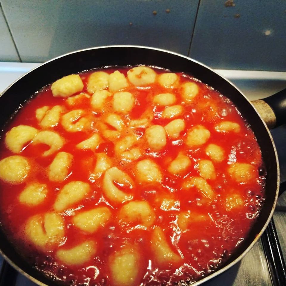 Nel frattempo cuocete gli gnocchi; essi vanno cotti in padella, spadellati in solo pochi minuti con poca acqua, aggiungete ad essa anche la salsa cotta.