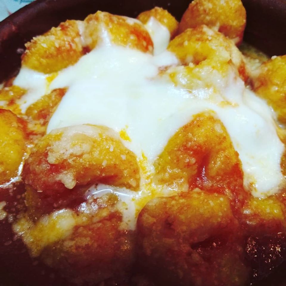 Preparate i tegamini di terracotta; versate un pò di sugo come base e copriteli con gli gnocchi ricoperti di mozzarella, formaggio ed altro sugo.