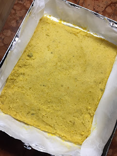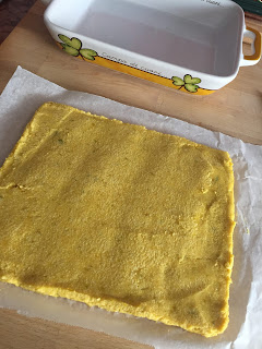 Stendere il composto ancora caldo sin una teglia coperta con carta forno,