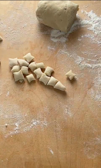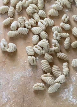 Quando l’impasto è pronto, inizia a formare gli gnocchi secondo la forma desiderata. Man mano che li prepari, sistemali su dei vassoi leggermente infarinati con farina di semola, lasciandoli asciugare mentre prosegui con la ricetta.