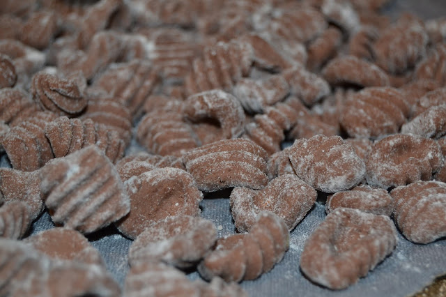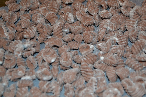 Amalgamare bene fino ad ottenere un impasto liscio, ricavare dei cilindri larghi un dito, tagliarli a tocchetti di due cm e passarli sui rebbi di una forchetta, mettendoli su un vassoio coperto con un canovaccio e cercando di farne un solo strato per non ammassarli.