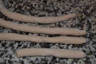 Amalgamare bene fino ad ottenere un impasto liscio, ricavare dei cilindri larghi un dito, tagliarli a tocchetti di due cm e passarli sui rebbi di una forchetta, mettendoli su un vassoio coperto con un canovaccio e cercando di farne un solo strato per non ammassarli.
