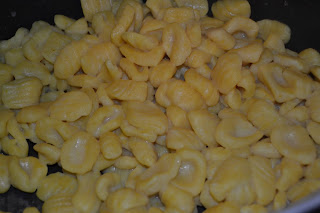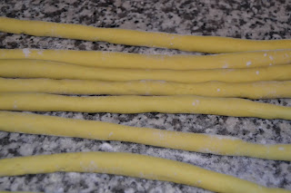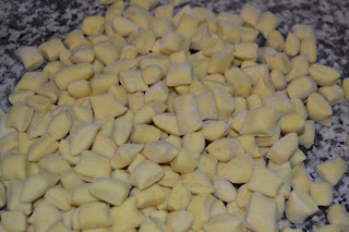 Amalgamare bene fino ad ottenere un impasto liscio, ricavare dei cilindri larghi un dito, tagliarli a tocchetti di due cm e passarli sui rebbi di una forchetta, mettendoli su un vassoio coperto con un canovaccio e cercando di farne un solo strato per non ammassarli.