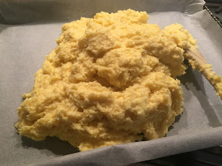 Versare la polentina ottenuta in una teglia da forno